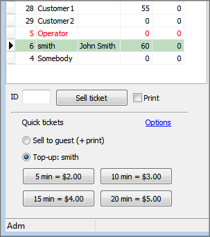 Configure a number of ticket templates which you can use to create, print and sell tickets to your guest customers or top-up existing customer accounts with one click.