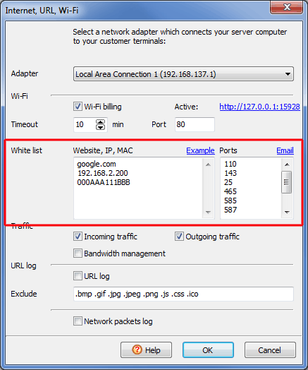 For example, you can add your employees' laptops addresses here so that they have free access to the Internet.